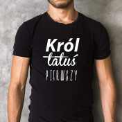 Praktyczna, wygodna koszulka z nadrukiem "Król Tatuś Pierwszy" w trzech kolorach do wyboru.