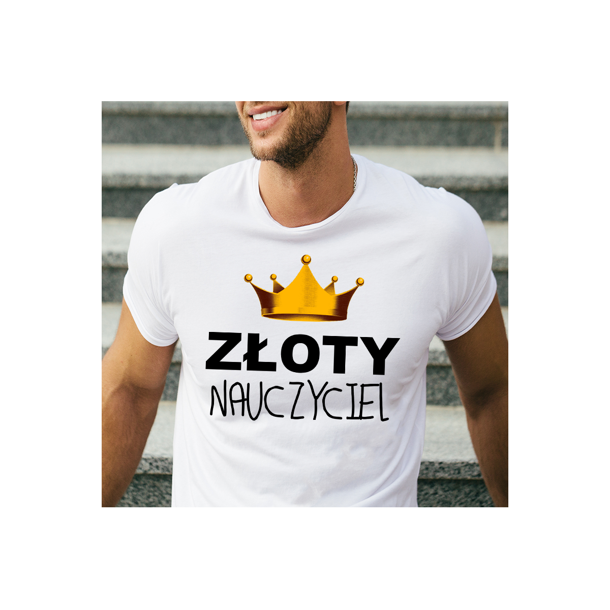 Cena 34,93 zł Cena podstawowa 49,90 złT-shirt lady/oversize DTG Złoty Nauczyciel