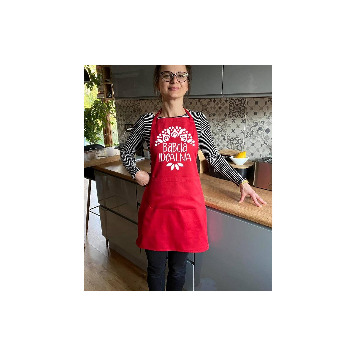 Fartuch Najlepsza Babcia... Fartuch Najlepsza Babcia Flowers czerwony