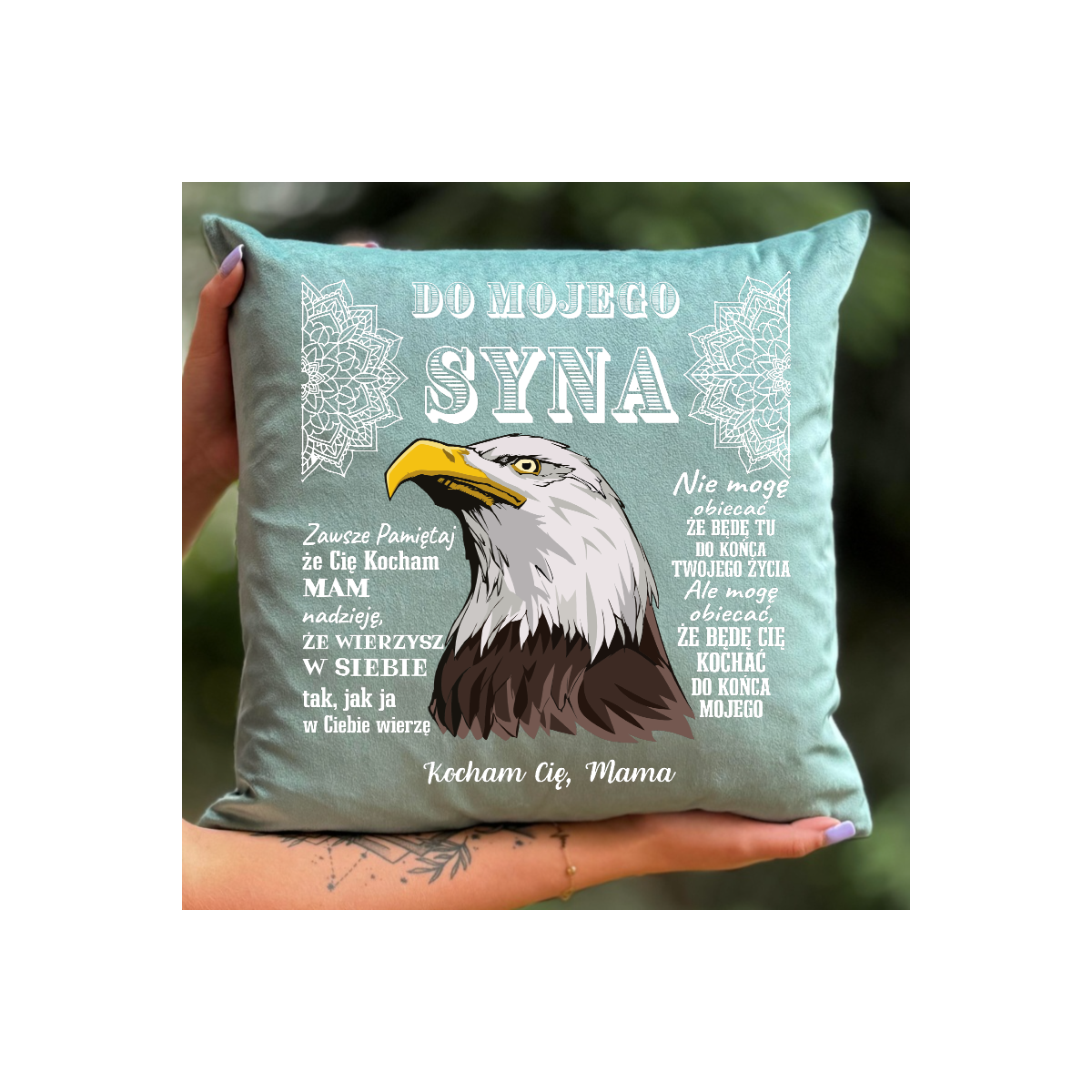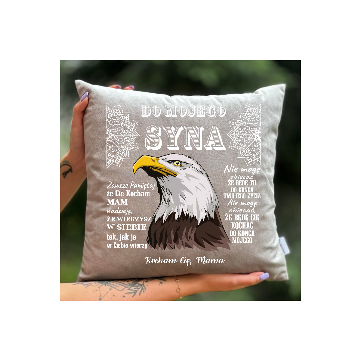 Materiał: Każda poszewka wykonana jest ze 100% Bawełny lub Weluru w zależności, którą opcję wybierzemy, co gwarantuje nie tylko doskonały wygląd, ale także niezrównaną miękkość i wygodę. Naturalna bawełna jak i dobrej jakości welur jest przyjazny dla skóry, co czyni tę poduszkę idealną nawet dla osób o wrażliwej skórze.