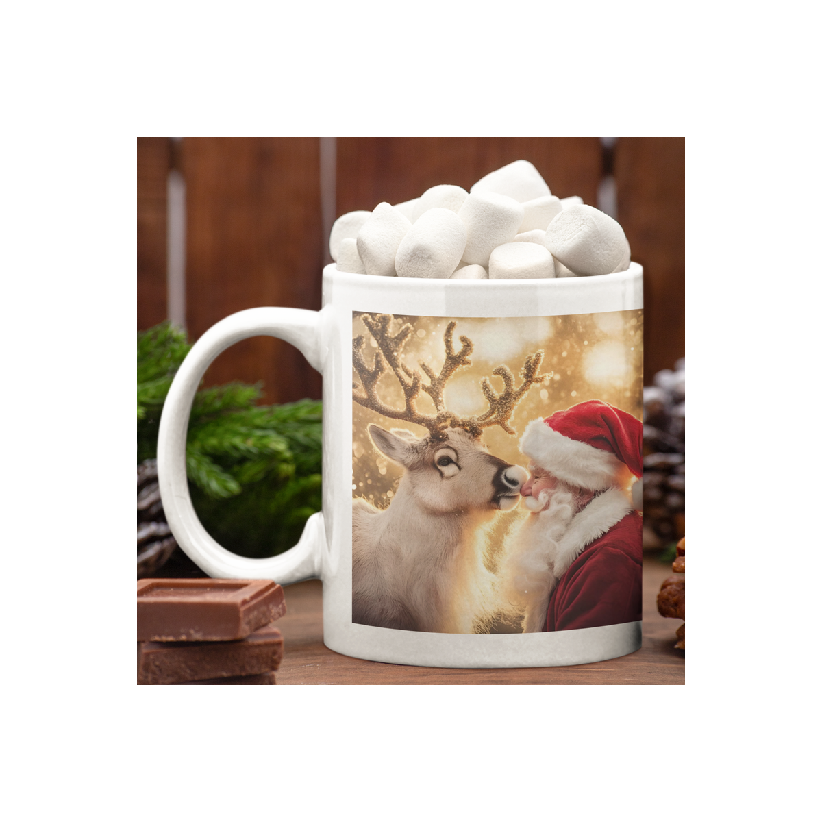 Wprowadź odrobinę magii świąt do swojego codziennego rytuału z wyjątkowym kubkiem, który łączy funkcjonalność z klimatem Bożego Narodzenia. Wykonany z wysokiej jakości ceramiki, gwarantuje trwałość i odporność na uszkodzenia. Jego powierzchnia, ozdobiona świątecznym nadrukiem, delikatnie połyskuje, dodając elegancji i uroku. Kubek ma klasyczny, cylindryczny kształt, który wygodnie leży w dłoni, a solidne, wygodne ucho sprawia, że można cieszyć się ulubionym gorącym napojem w świątecznej atmosferze.